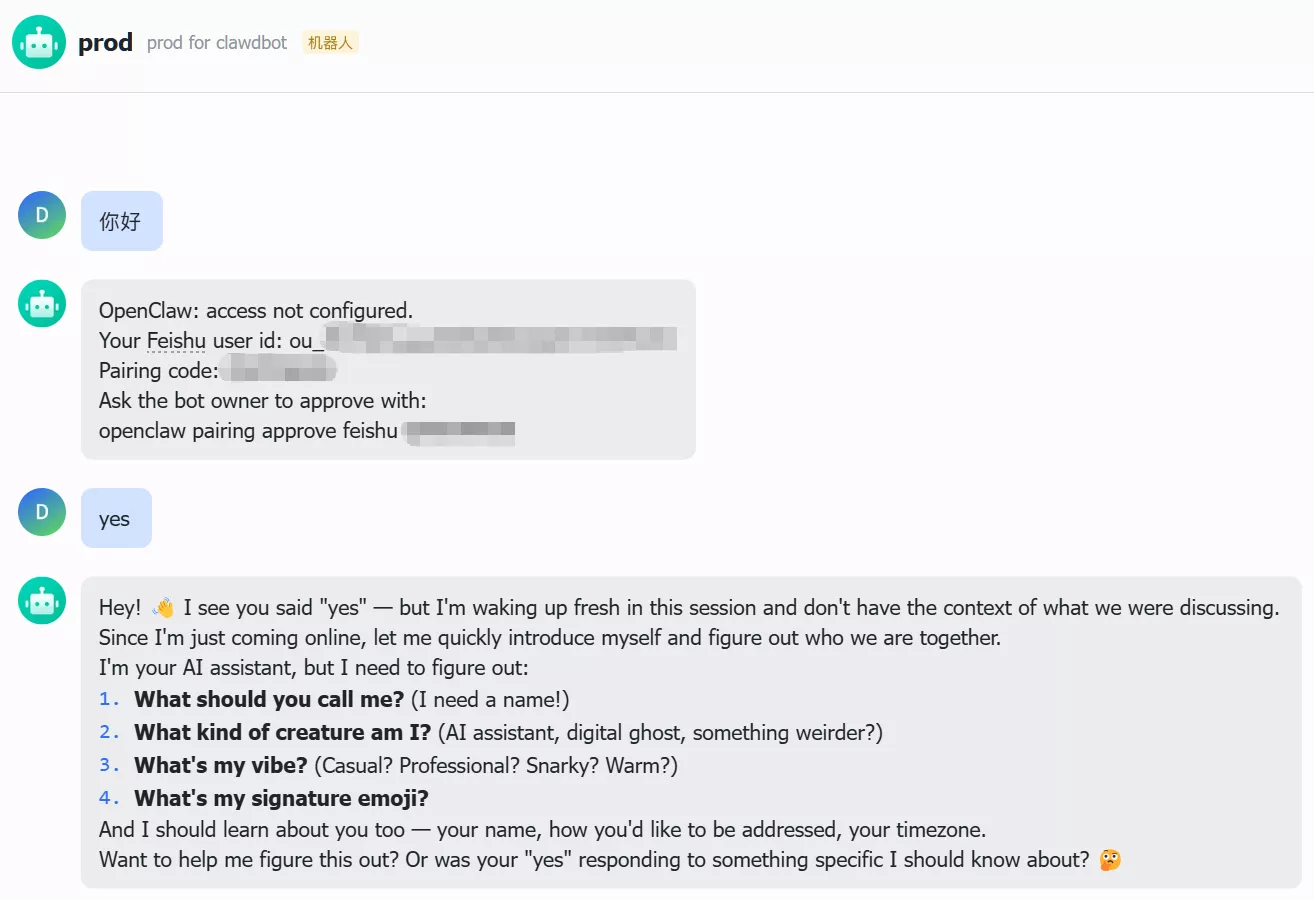 Enter Feishu App ID时输入 ID。 - 连接测试: 看到